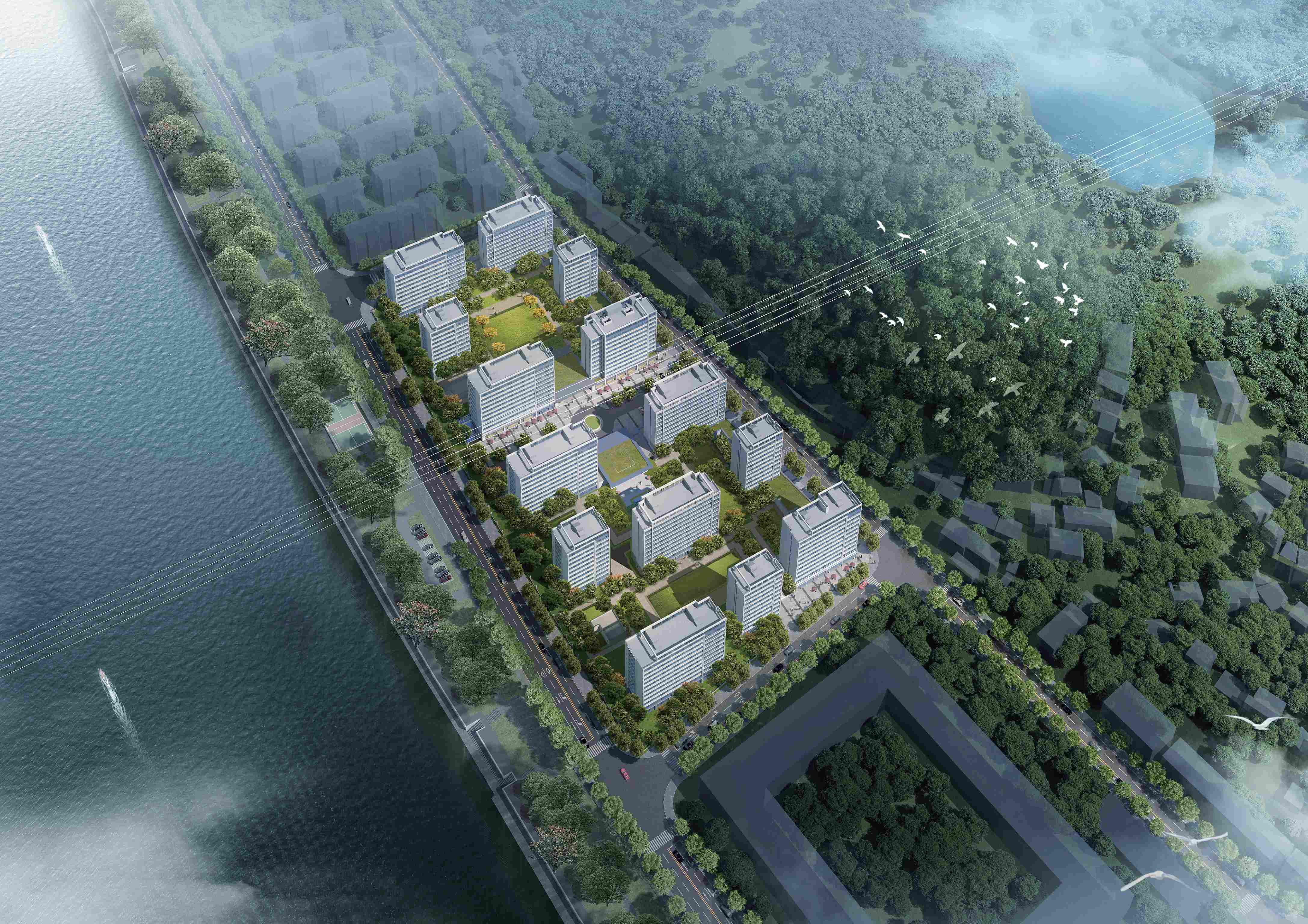 项目位于杭州市桐庐县分水镇桥东汽车城北地块内,西至S208 省道及分水江,北至裕丰家园,东侧为怀恩路,南侧是汽车城。项目地块紧邻西侧分水江,有着一线江景。总用地面积31433 ㎡,总建筑面积约80000㎡。